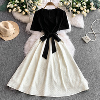 YM0153レディースカジュアルミディドレス人気爆発スプライスプリントスリムウエストエレガントドレス
